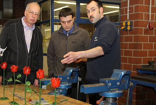 und Sascha Wittrock die Arbeiten der Teilnehmergruppen aus dem Metallbereich.